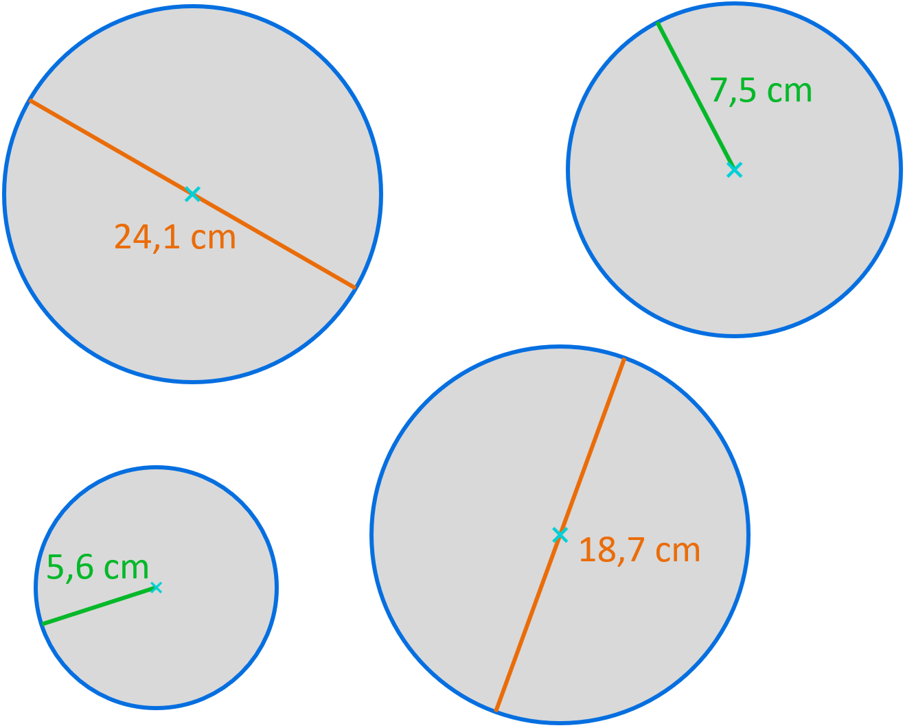 Berechne jeweils den Flächeninhalt der Kreise.
