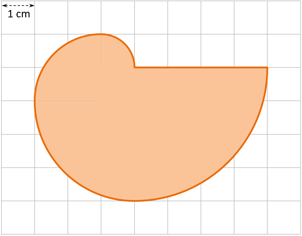 Bei einem alten Computerspiel aus 1980ern steuerte man eine Figur namens Pac-Man, die in einem Labyrinth Geistern ausweichen und dabei Punkte auffressen musste. Dafür ging ihr Mund immer auf und zu. In der Abbildung ist der Mund zu einem Viertel des Kreises geöffnet. Der Radius von Pac-Man soll hier 2 cm betragen.